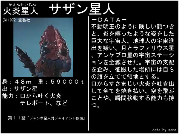 | キュラソ星人 | ウルトラセブンに登場。火炎系宇宙人。 | ||