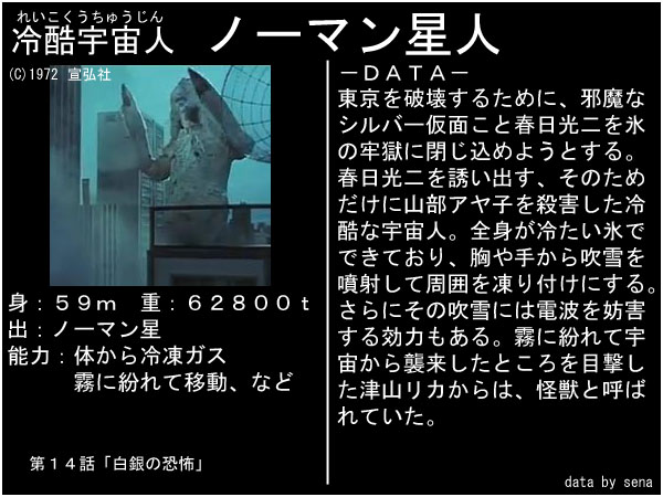 | ブラック星人 | 帰ってきたウルトラマンに登場。冷凍系宇宙人。 | ||